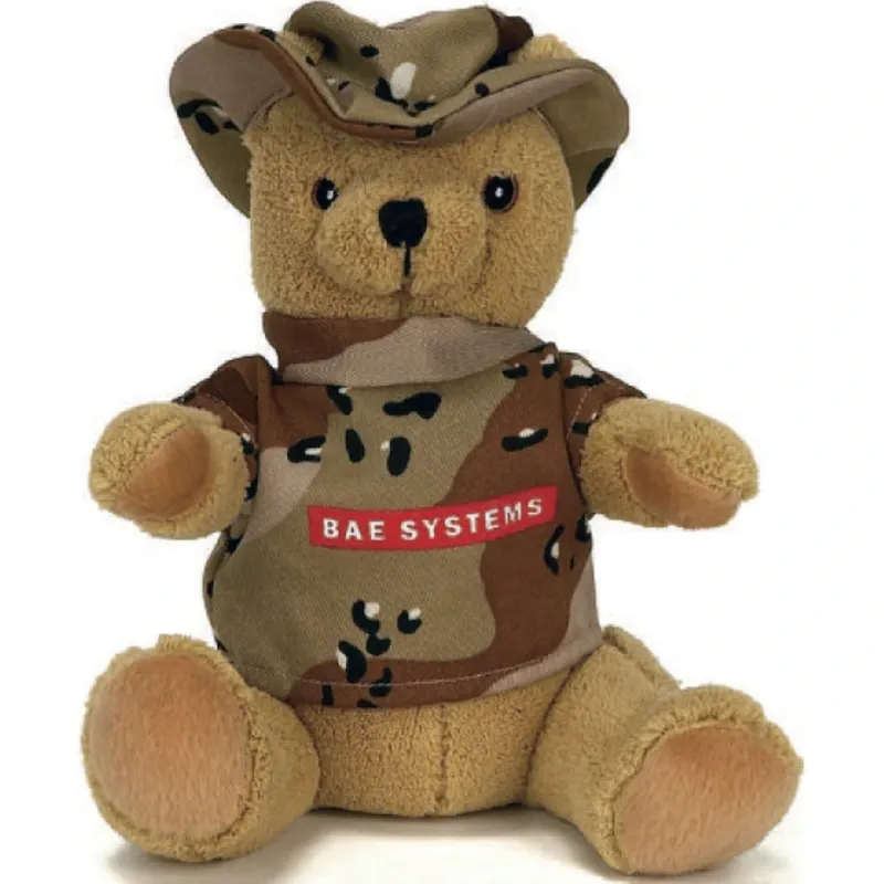 10" Desert Camouflage/Camo Bear stuffed animal plush toy. Great toy for veterans, active military personnel, military bases, Air Force, Navy, Marines, Coast Guard, Army, battleship museums, and more. Excellent to incorporate into gift shops, national parks, memorials, memorial services, and more. This toy can help show support and appreciation to the military and veterans. Low minimum, excellent gift idea and tradeshow giveaway.