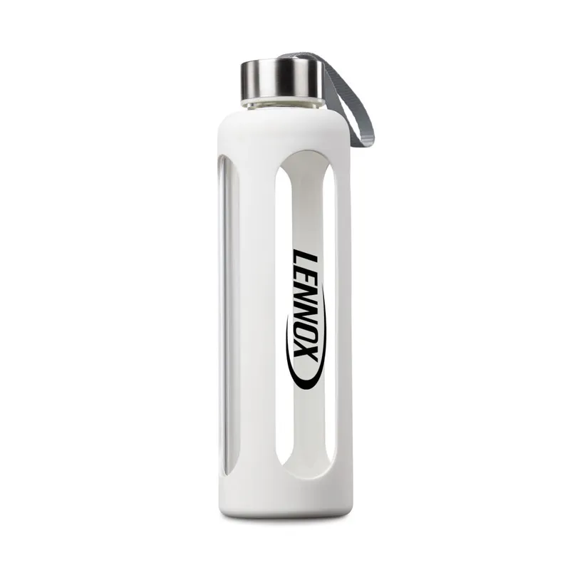• Single wall glass water bottle with protective silicone sleeve