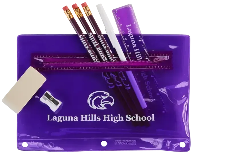 Each kit includes three Jo-Bee Miser round pencils, one white Competitor stick pen, one 6" plastic ruler, one jumbo eraser without imprint, and one white pencil sharpener without imprint. Practical and ready to use, the Academic School Kit supports a wide range of academic needs.