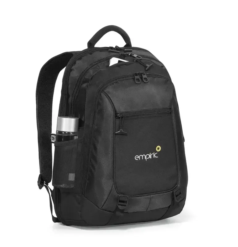 All the convenience of a backpack with space for your computer and imprinted logo! The Alloy Computer Backpack features a front zippered compartment with multi-function organizer and padded, scratch-resistant tablet pocket (fits most 10 tablets with a case). A top zippered, scratch-resistant pocket is perfect for storing a smartphone or sunglasses and a generous, zippered main compartment with mesh storage pockets.
