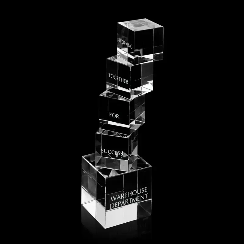 Celebrate significant achievements with our Custom Crystal Ascent Award. Perfect for employee recognition, promotional events, or celebrating milestones, this elegant award features a unique, step-like progression of smaller optical crystal cubes, symbolizing success. Each cube can be precision-etched with your custom logo, ensuring your brand stands out. It's a truly high-quality, eye-catching award that sends a strong message about your organization's commitment to excellence. Ideal for companies seeking to motivate and inspire their teams, this custom-branded award is a tangible reminder of success that won't be forgotten.