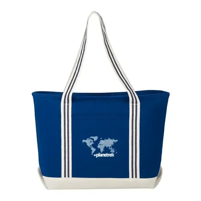 The Atlantic Stripe 20oz Cotton Zippered Boat Tote is constructed from durable, all-natural cotton canvas materials, making it both a stylish and practical accessory for your next outdoor event. This spacious, rugged bag contains a zippered main compartment for storing your essentials, plus an open front pocket for easy access to smaller items like sunglasses or ID cards.