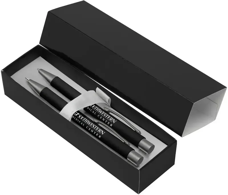 This gift set includes a Bowie ballpoint pen and Bowie mechanical pencil, both featuring the soft-touch rubberized finish. Both pen and pencil will be customized with mirror laser engraving. Customers are sure to enjoy this gift set.
