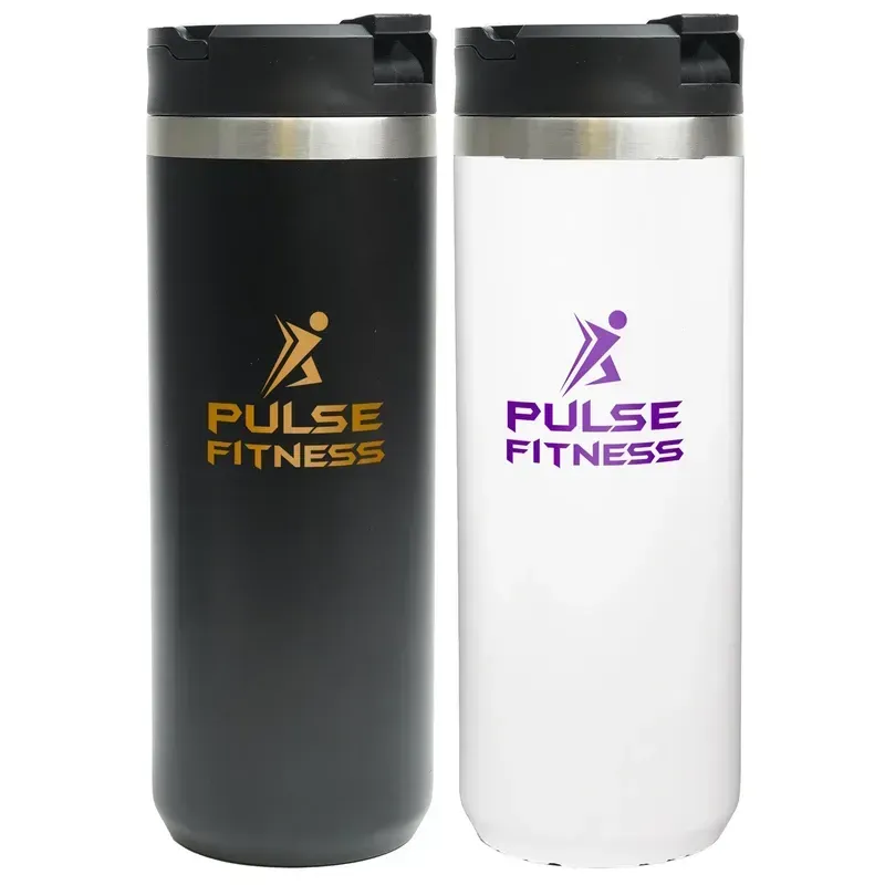 The Buckhorn bottle was designed with retail inspiration. Made from matte double walled stainless steel this bottle is equipped with a top carry handle and flip-up straw. Finished off with a stainless steel top rim this stunning bottle screams high-profile and high value. The flip-up straw and carry handle sit flush in the top lid leaving clean lines that are aesthetically appealing to the eye. The wide mouth opening allows ice to be easily added helping to keep your beverage cold for hours.Please Note:Longer lead times will be required for Full Color HD360 orders