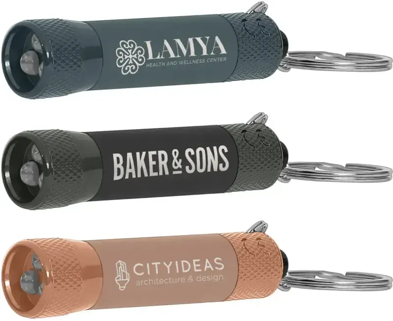 Customers will love the monochrome metallic design and soft-touch barrel on this super-stylish and functional LED flashlight keyring. This 3-LED flashlight shines a bright white light, and includes a keyring to help keep this flashlight always at the ready, right when you need it. Includes 3 LR44 batteries.