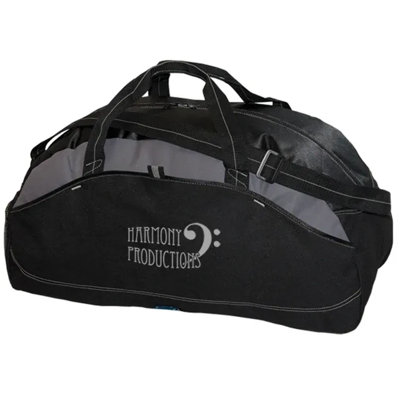 Two webbed carry handles Adjustable/non-detachable shoulder strap Mesh pocket on one end Open slash pocket on front Single top zipper to main compartment. 35 L Capacity