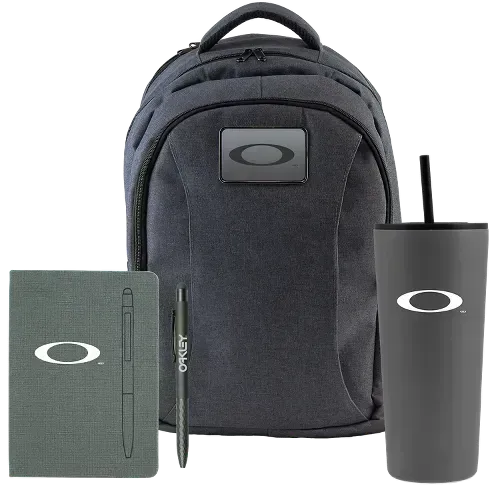 - This kit includes: ACHIEVER 7.5" X 6-5/8" Notebook W/ Soft Touch Aluminum Pen; VERSA: 22 Oz. Powder Coated Tumbler With Hot/cold Lid; MOTION: 3 Zippers Large Storage Backpack.