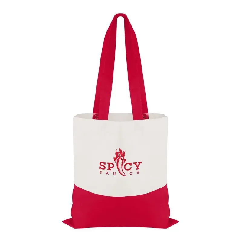 This cotton sheeting tote will turn heads with its two-tone design and colored handles, available in several bright and upbeat color options. The sturdy elongated 26" self handles on this reusable bag are a nice length for carrying comfortably over your shoulder while you run errands, shop the stalls at the farmers market, or make your weekly trip to the library.
