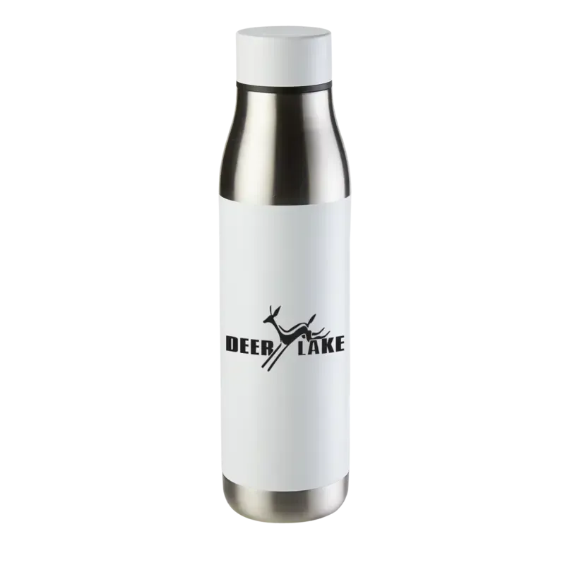 This 22 oz. Venture Stainless Steel Insulated Bottle is a smooth and striking stainless steel and copper lining double wall vacuum insulation that keeps drinks cold for up to 18 hours and hot for up to 8 hours. The bottle comes with a matching spill-resistant screw-on cap. Great as promotional product for gyms and other health and fitness organizations, but also could be branded for you college, picnic, company, or travel. This 22 ounce bottle is available in two colors and features several imprint options for your brand. No gift is as useful or practical as this bottle!