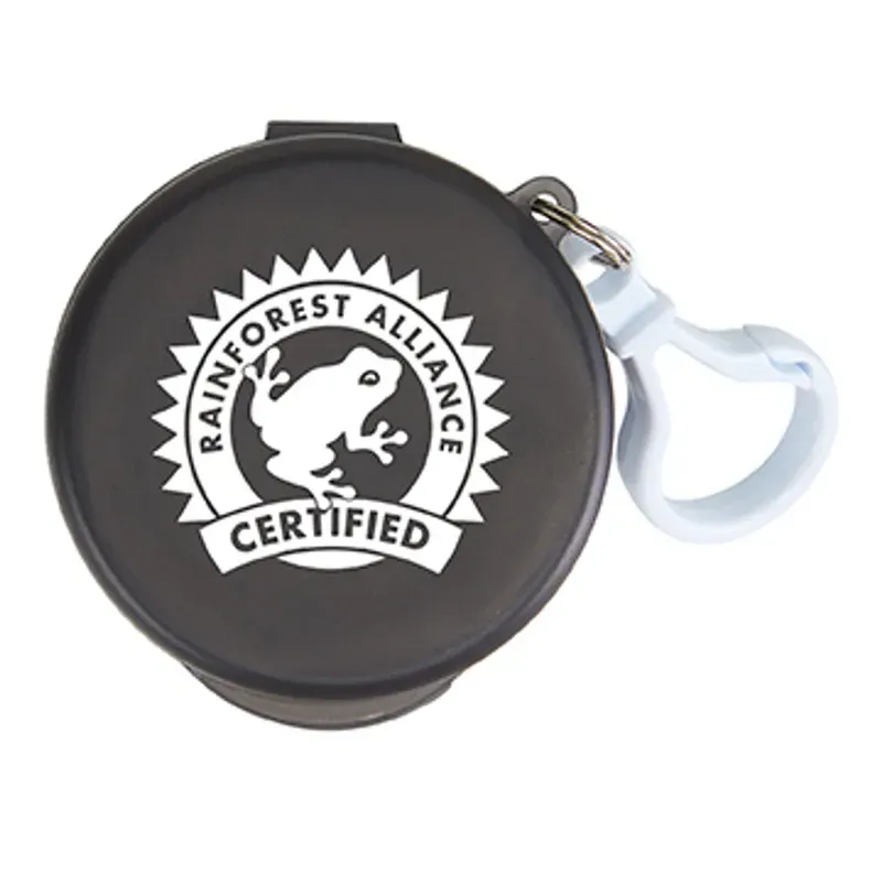 - Colorful container features a carabiner that easily attaches to purses, backpacks or belt loops