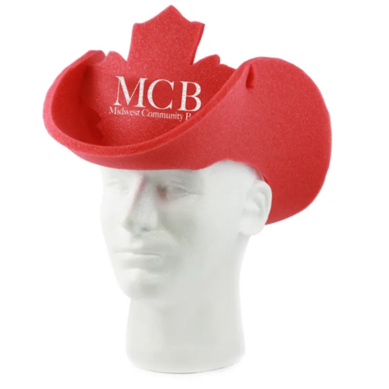 Make sure you don’t “leaf” this product behind! Featuring a maple leaf shape, this cowboy hat is perfect for promoting sports teams, corporate events, and other special occasions. Constructed out of foam and designed to fit most heads, it features a large imprinting area for your company message, logo or name using the available silkscreen method. Show some enthusiasm and gain an edge over your competition.