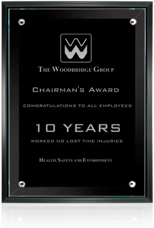 The Danbeigh plaque is made from 3/16" jade glass and a black wood product backing. Also available with rosewood-colored backing. Please specify vertical or horizontal format.