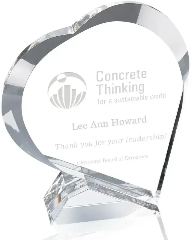 With deep symmetrical bevels curving between front and back, the lovely heart shape of the Devotion highlights the flawless clarity and sparkle of pure optical crystal. Supported by a slanted optical base, the etched Devotion captures the moment permanently with elegance and warmth.