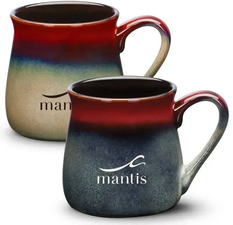 The 16oz barreled Dodsworth Ceramic mugs are manufactured with a specialized reactive glaze process that uses a multi-layering technique with two or more complementary colors which blend together during firing. These variegated glazes create a unique, one-of-a-kind effect on each individual mug and so no two are alike. As reactive glaze colors can vary drastically, these artistic ceramic mugs may not be suitable where color consistency is crucial.