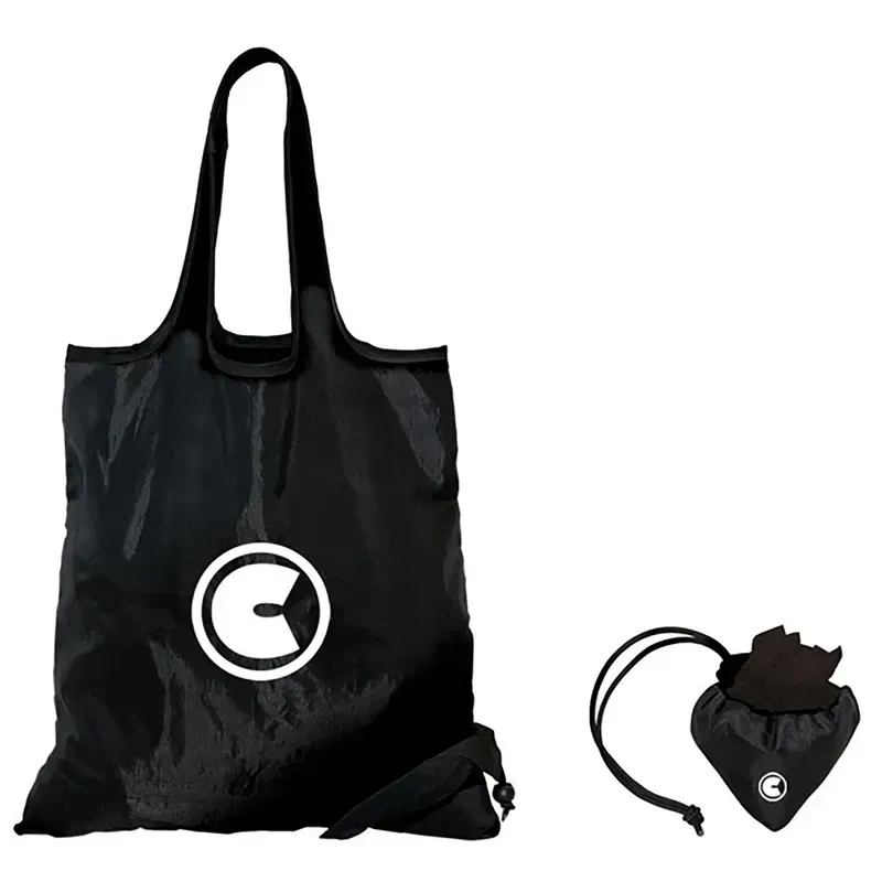 Lightweight Practical and easy to carry Folds into its own little pouch with elastic closure and plastic stopper Keep handy to reuse over and over again If you choose to print on the pouch your logo will be seen if the bag is open or closed A practical shopping tote! Bags shipped open, not folded