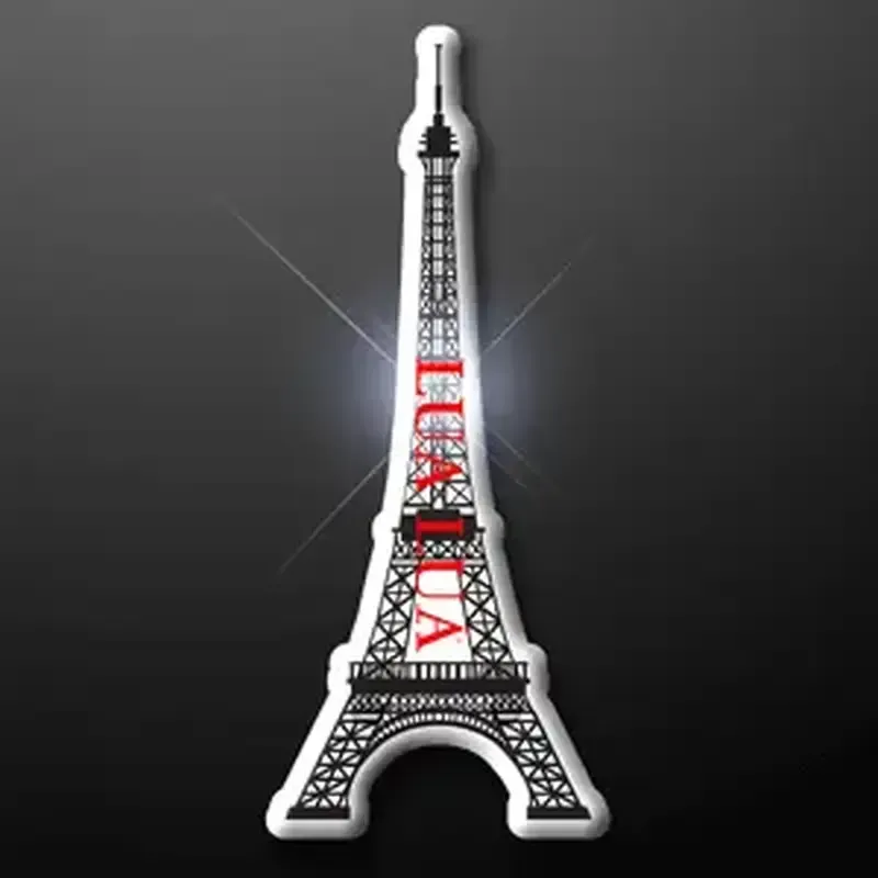Light Up Eiffel Tower Flashing Pins are a francophile's flashing blinky dream. A beautiful rendition of the Eiffel Tower and the perfect gift at any affair. Attaches with a military clutch style pin. Activated by pressing a button on the back of the piece.