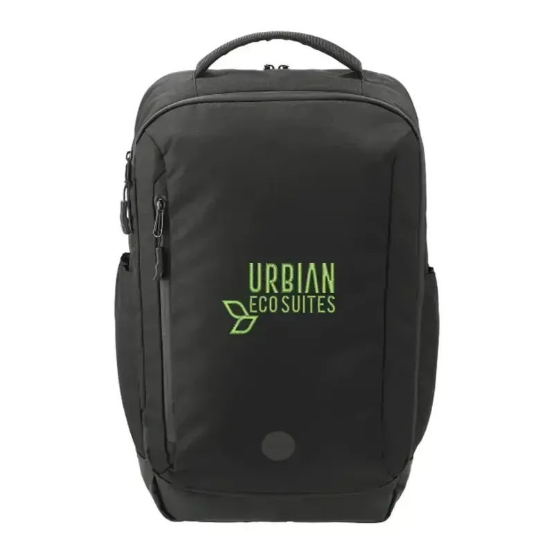The elleven™ Versa 15" Computer DayPack was designed with the ultimate day trip in mind. The exterior is made from 305D bluesign® fabric and features a wipeable tarpaulin bottom. Keep must-haves in the front zippered pocket and your favorite reusable drinkware in the side water bottle pocket. The main compartment has plenty of storage space and makes it easy to stay organized. The front wall of the main compartment includes a zippered PVC pocket, daisy-chain webbing, two slash mesh pockets, and a larger slash pocket. On the back wall, you'll find a large zippered mesh pocket, another slash pocket and another mesh pocket. A dedicated padded laptop compartment keeps your laptop separate from the other day-trip essentials. The padded back panel and shoulder straps make this bag comfortable to carry all day long. Through a partnership with 1% For The Planet, one percent of sales of all EcoSmart® products are donated to environmental nonprofits.