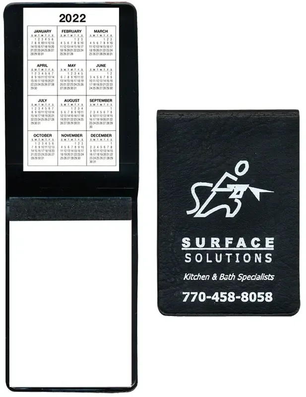 This item has a clear pocket on the inside of the cover to hold small cards such as business cards. This item includes a 100 page pad.