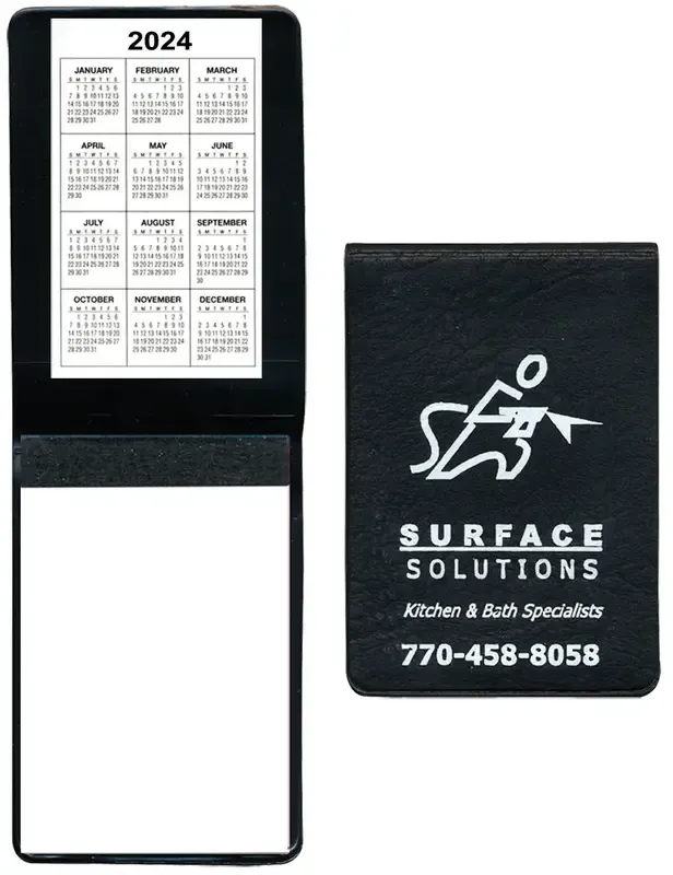 This item has a clear pocket on the inside of the cover to hold small cards such as business cards. This item includes a 30 page pad.
