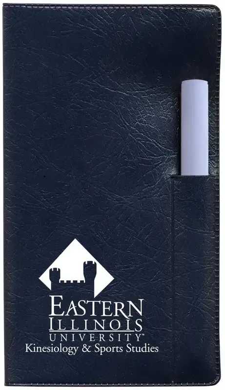 This Executive Vinyl Cover Monthly planner with a flat pen features 32 pages and shows one Month on a two-page spread.
