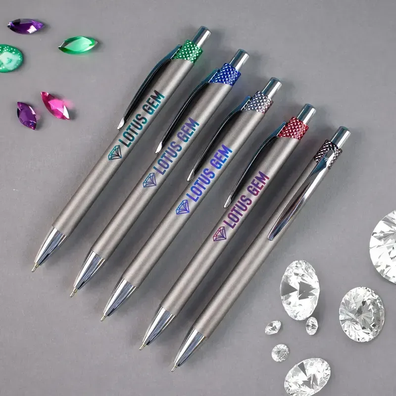 Discover the Facett Pen—an executive metal masterpiece with a unique faceted gem-like trim that effortlessly blends style with practicality. Elevate your brand by imprinting your logo on this sleek design, creating a lasting impression. This one-of-a-kind pen not only makes a statement but also offers a smooth writing experience with hybrid ink, ensuring your clients enjoy both form and function. Make your mark with the Facett Pen—a symbol of sophistication and personalized branding.