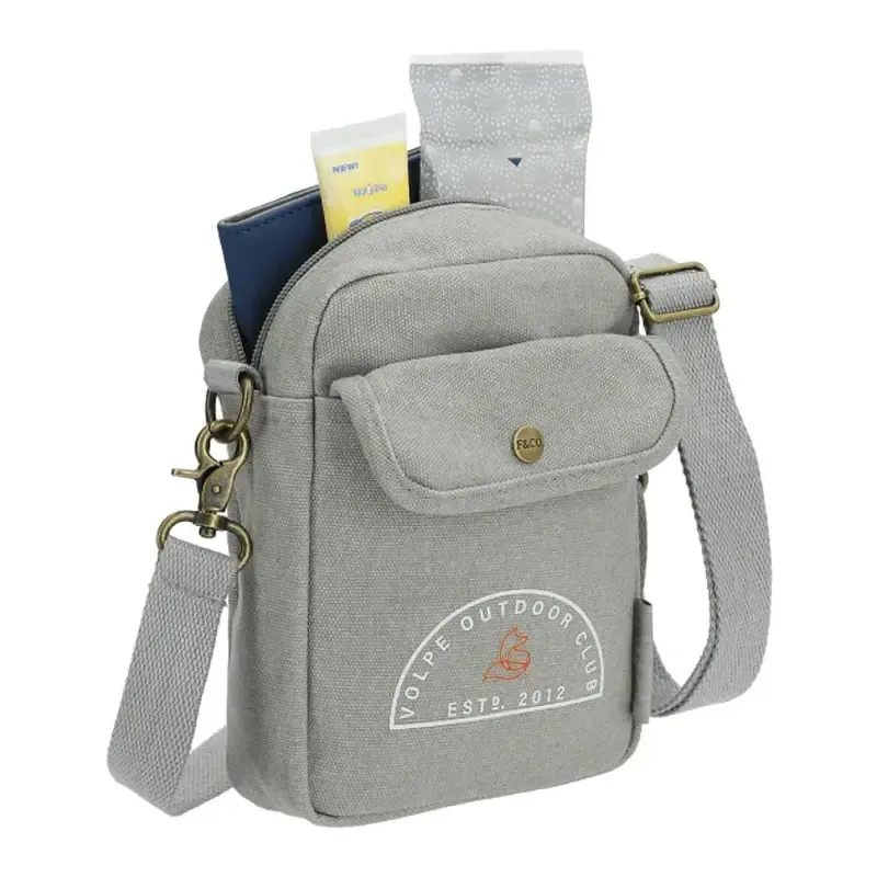 The Field & Co. Campus Cotton Crossbody Tote is your new companion for everyday life. It's small size is ultra convenient to carry essentials like a phone, wallet, keys, etc... and it meets most venue requirements for sizing. The adjustable shoulder strap allows you to customize the fit and its also removable so you can utilize it as a pouch for internal storage and organization within another bag. The durable 16oz cotton fabric and metal snap and hardware make this a perfect on-trend piece for any wearer.