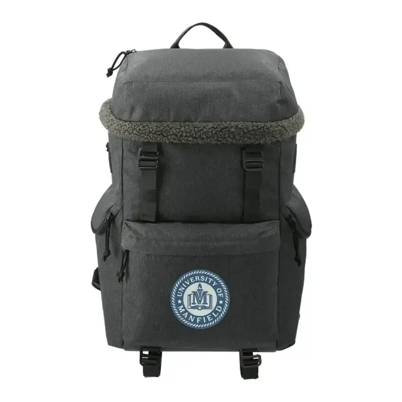 The Field & Co. Fireside Eco 15" Computer Rucksack is ready for your next adventure. This eco-friendly backpack is made from RPET and features sherpa accents. The zippered front pocket offers the perfect place for your logo as well as two slash pockets to help you stay organized. Two zippered side pockets give you a place for your water bottle and any other items you want close by. Inside the zippered main compartment, you'll find a padded 15" computer sleeve and a zippered mesh pocket. Premium add-ons such as high-quality hardware and bottom accessory straps elevate this backpack to the next level. The padded, adjustable shoulder straps and sternum clip help keep the backpack comfortable on long walks into the woods. Through a partnership with 1% For The Planet, one percent of sales of all EcoSmart® products are donated to environmental nonprofits.