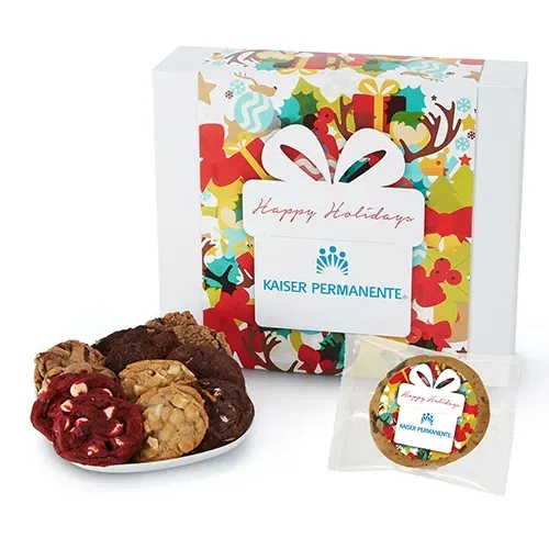 Our Gourmet Cookies & Brownies are baked fresh for your order! Cookie flavors include Chocolate Chunk, Oatmeal Raisin, Double Chocolate Chunk, Red Velvet, S'mores and White Chocolate Macadamia Nut. Brownie flavors include Chocolate Chip, Blondie with Dark Chocolate Drizzle, Smores and Cookies & Cream. All of our baked goods are individually wrapped to preserve freshness. Customize the gift box with your 4 color process artwork.