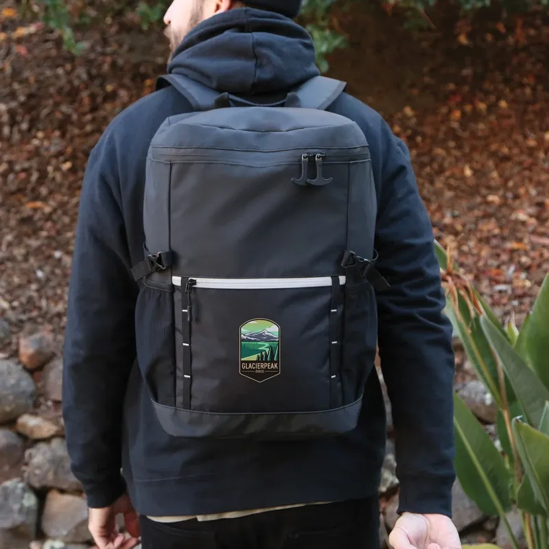 Explore more promo territory with the Glacier Peak 19L Backpack. This backpack features a single main compartment with multiple pockets to organize your belongings. The water-resistant fabric and zipper keep them dry, even in unpredictable weather conditions. The reflective strips along the front zippered pocket keep you visible in low-light conditions. Perfect for the avid explorer or anyone looking for a reliable backpack for everyday needs. Packaged in an individual open poly bag.Please Note:Longer lead times will be required for Perma Press orders