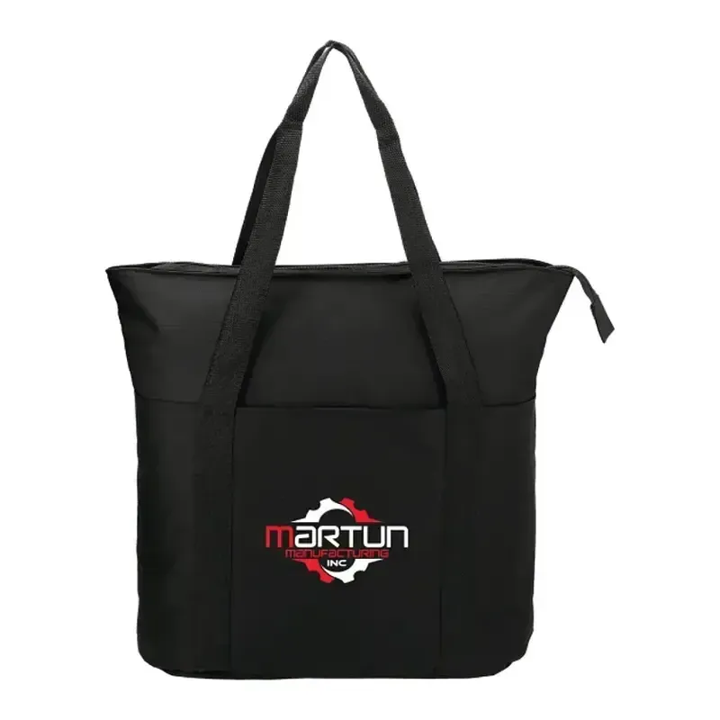 The Heavy Duty Zippered Convention Tote has a zippered main compartment and an interior zippered pocket. It also features a front pocket with a hook-and-loop closure and double 29" handles. With sturdy construction and a lightweight design, this PolyCanvas zippered tote is great for conventions, tradeshows, and business meetings around town.