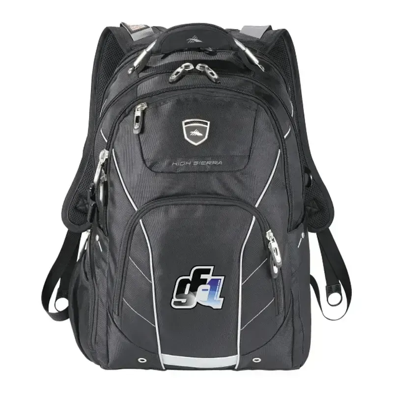 The High Sierra Elite Fly-By 17" Computer Backpack features a checkpoint-friendly laptop compartment to make getting through airport security a breeze. It contains a total of four compartments to provide you with ample storage, including an organizer compartment with a mesh pocket, pen pockets and a key fob. The Elite Fly-By also has a Cushion Zone padded 17" computer compartment, plus a dedicated Tech Zone for your iPad or other tablet. An adjustable sling system in the laptop compartment provides added protection for your computer during transit.