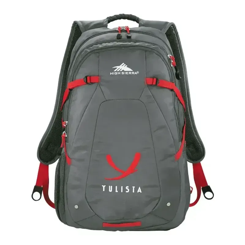 The High Sierra Fallout 17" Computer Backpack features a spacious multi-compartment design to provide you with convenient storage for all of your essentials. It includes a Tech Spot sleeve that fits iPads and most other tablets, a fully padded Cushion Zone computer sleeve that fits most 17" laptops, and a core organizer with multiple pockets and a key fob. This durable backpack also features a media pocket for your smartphone and a mesh pocket for your water bottle. With its S-shaped, yolk-style, padded Vapel mesh shoulder straps, you'll enjoy comfortable all-day wear.