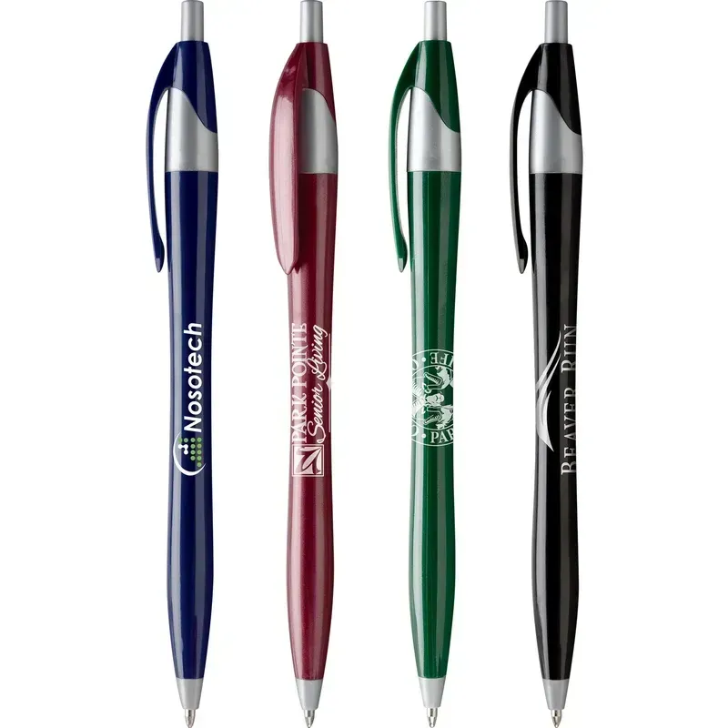Deep corporate colors with silver accents give this pen high-end looks. Guaranteed ultra-smooth writing cartridge and top quality construction make this a top seller in the industry. Black or blue ink, blue ink default
