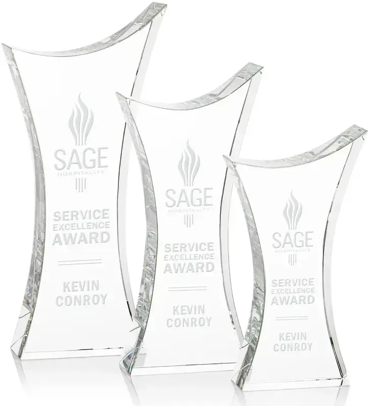 The hourglass shape of the Optical Crystal Keighley award brings an organic softness to rigid clear optical crystal material making an artistic statement of form to any achievement.
