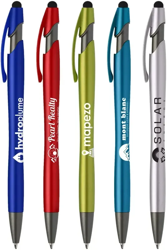 Our new La Jolla Gunmetal Pen with Stylus has contemporary gunmetal accents that will grab extra attention from customers and prospects. This metallic pen with a stylus at the top is the perfect 2-in-1 advertising gift. It features a sleek barrel in vibrant colors, matching clip, and a stylus for touchscreens. Best of all, you can customize it with your 1-color silkscreen imprint. Pick up a bundle today to have your customers thanking you for adding style and color to their days!