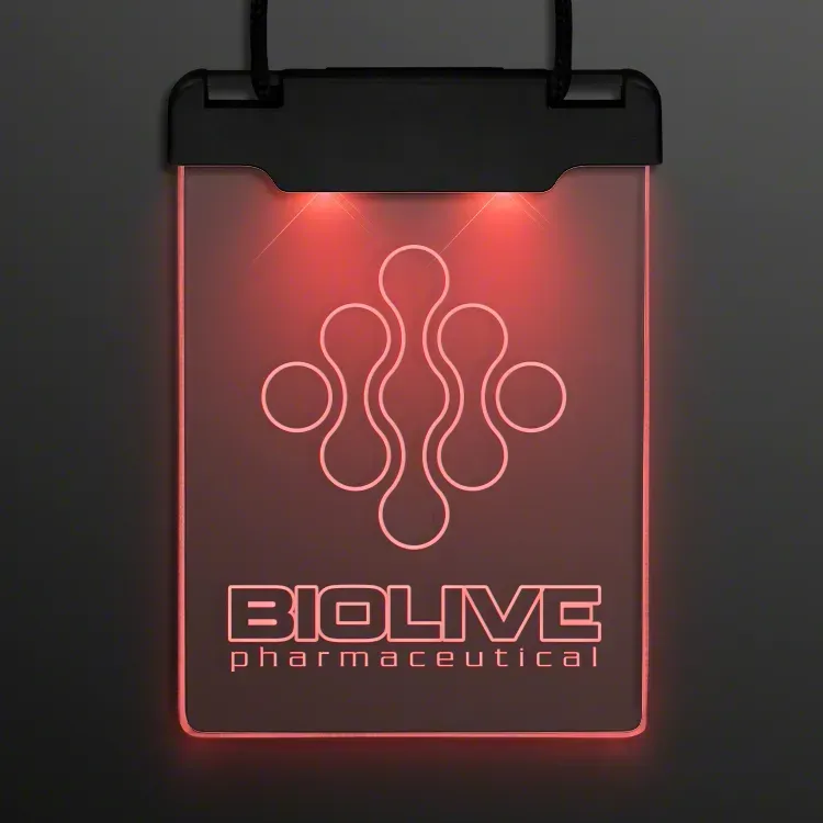 The ultimate in VIP experience has arrived. Space Glow Light Badge Necklace features a large imprint area for promoting your brand, companies, or slogans. Great to use at Concerts, Festivals, or Trade shows. Light Up Badges come with breakaway clasp for safety and easy removal.