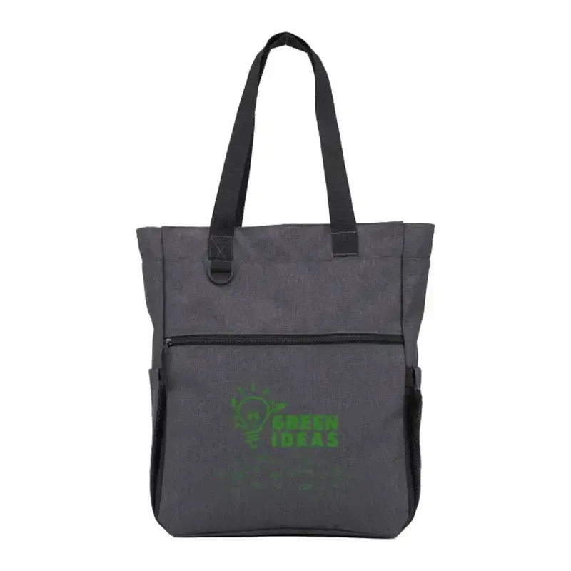 The Luna RPET Convertible Backpack Tote can do it all! You can carry this bag over your shoulder or as a backpack with the adjustable straps! Zipper closure to keep your goods secure and a zippered front pocket for extra storage too. The two water bottle pockets make sure that your beverages are always easily accessible. Made from 600D recycled PET.