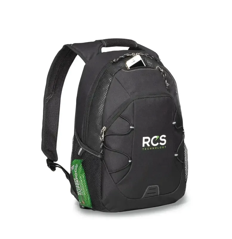 This Matrix Computer Backpack offers on trend digital print accents and ample storage space. Features top and front zippered pockets with scratch resistant lining ideal for a smartphone or a padded pocket for 10" tablet storage, a multifunction organizer and dual mesh pockets for various accessories. Large main compartment with padded 15" laptop sleeve, mesh interior pockets, integrated backpack straps, a top grab handle and mesh grab handle, straps and a back panel for cool and dry comfort.