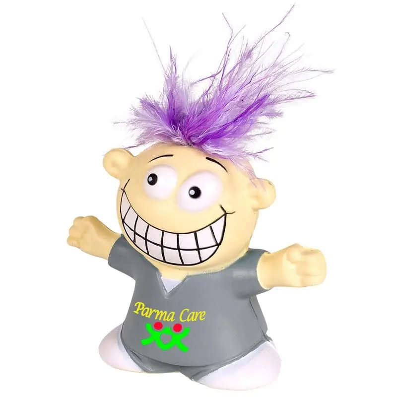 • Polyurethane foam stress reliever with feather "hair". • Stress relievers are not intended to be children's or pet's toys.
