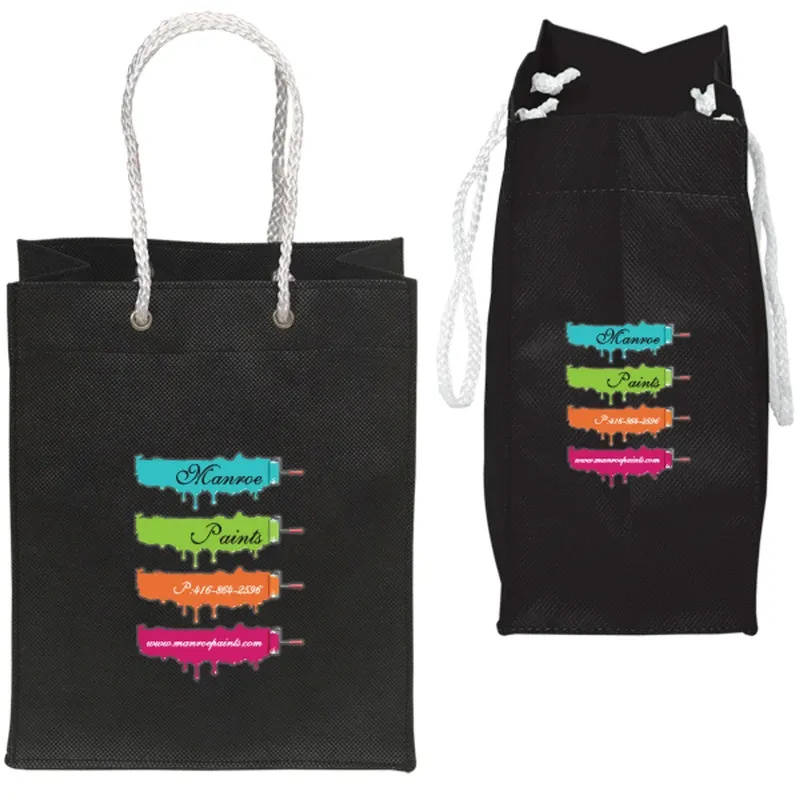 White rope handles Use to carry small items, a gift bag or a loot bagPlease Note:Maximum two color screen print on black bags