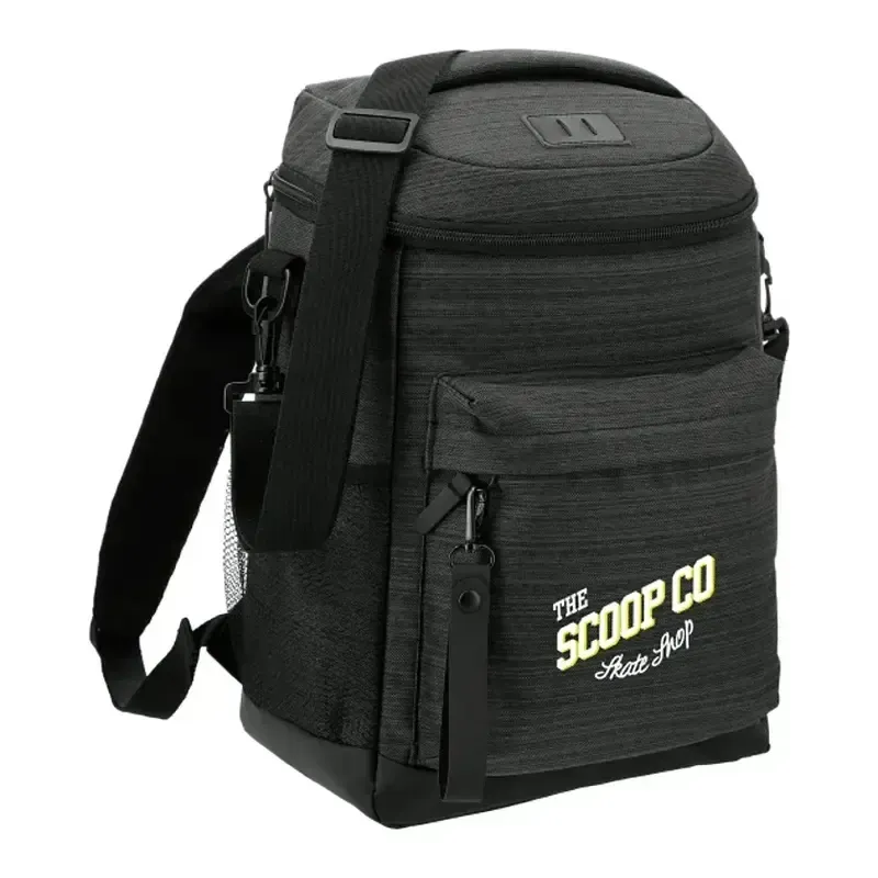 NBN stands for "No Brand Needed."The NBN Whitney 24 Can Backpack Cooler features a premium vinyl lash-tab, a mesh side pocket for your water bottle, and a zippered front pocket for extra snacks or accessories. It's made from sturdy PolyCanvas material, features PEVA lining, and has an interior ID label for easy identification. The zipper on the front pocket has an oversized pull that can be customized with your logo.