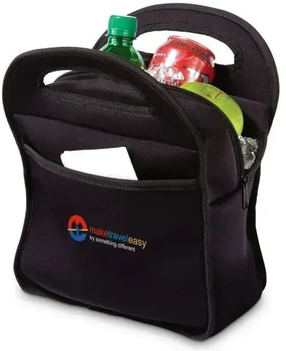Wanna do lunch? Here is your cooler! Surprisingly large capacity cooler in durable neoprene. Front pocket and contoured handles