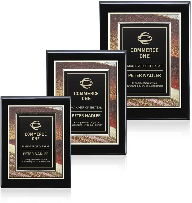 High Gloss Piano Finish Plaque features a laser engraved plate with a beautifully designed border. Available in Rosewood or Black Piano Finish.