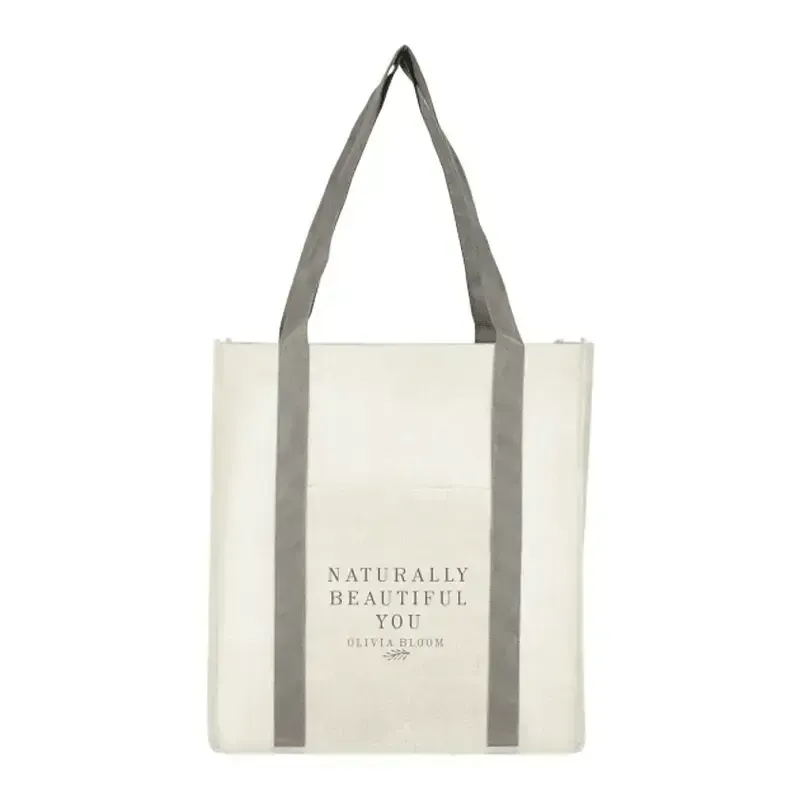 The Pluto Recycled Non-Woven Small Grocery Tote features a new natural looking take on non-woven bags and is sure to stand out. Featuring a front pocket for easy access and open main compartment this non-woven tote is perfect for all your needs!