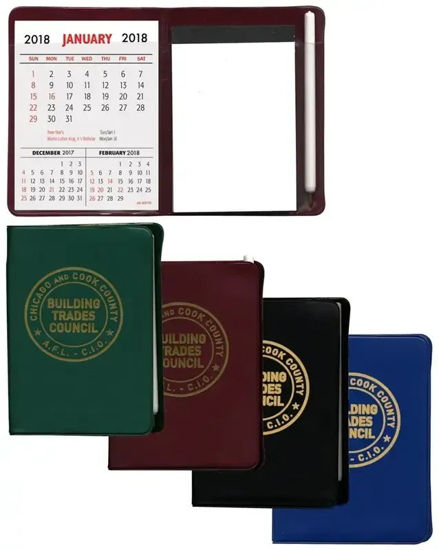 Our NEW pocket secretary features a 30 page pad along with a full year calender and a pen. You can order from 4 great classic colors.