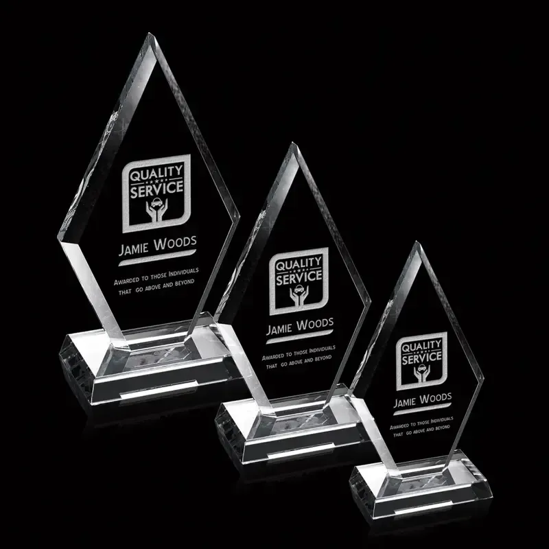 The 9.5" high, Starfire glass Premier Diamond is a four-sided symmetrical award with prominent, constant-width bevels all on the front. Also available in 6.5" and 8" versions and in jade glass.