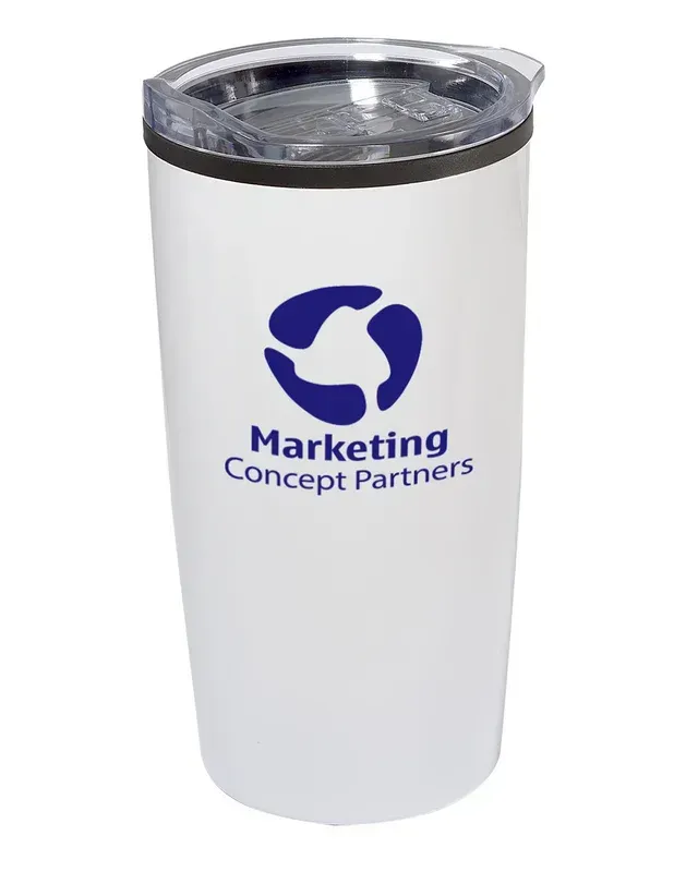 20 oz. (591 mL) double wall tumbler with201 Stainless Steel exterior, black PP plastic interior and EVA non-slip base; Includes spill-resistant slide action lid with silicone gasket; Designed for use with hot and cold liquids; Hand-wash only; Product Size: 6.56" h x 3.43" dia.;