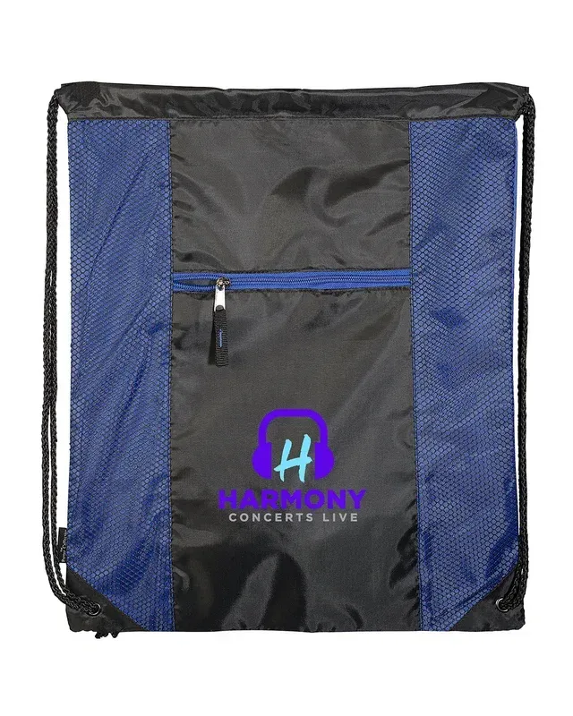 210D Polyester with PU backing, ; zippered front pocket and color mesh-patterned accent side panels; Front pocket measures approx 8"w x 1.15"h; Hand-wash only; Recommended weight tolerance: 10 lbs; Product Size: 15" w x 18.5" h;
