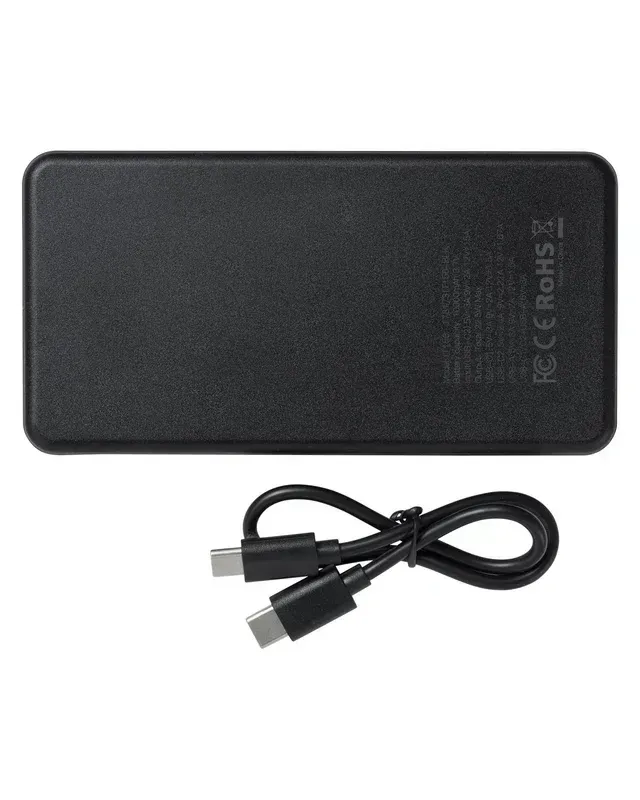 ABS Plastic; Slim size, big power; 10,000mAh/3.7V capacity; Triple output port, USB-A and 2 x USB-C, USB-C2 support both input and output ; Includes instruction manual and type-C to type-C power bank charging cable; phone charging cables not included; Product Size: 2.68" W x 5.24" L x 0.63" D; Shipping available only to contiguous U.S. addresses via Ground;
