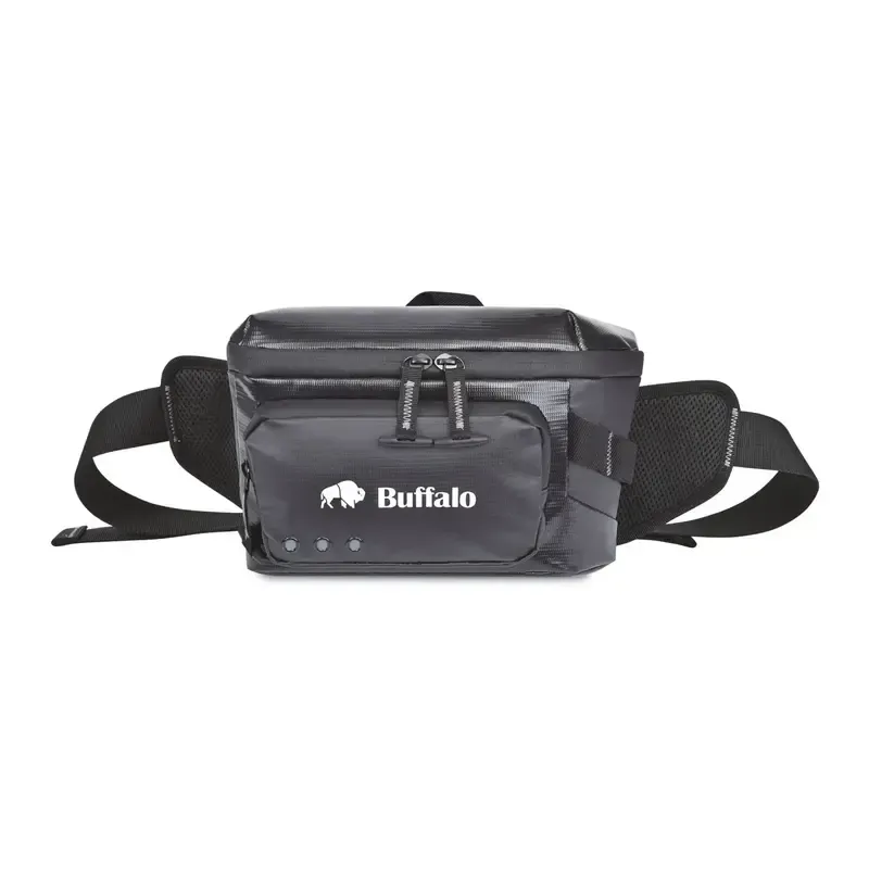 - Made from wipeable and easy-to-clean tarpaulin material, the fun waist pack doubles as a cooler